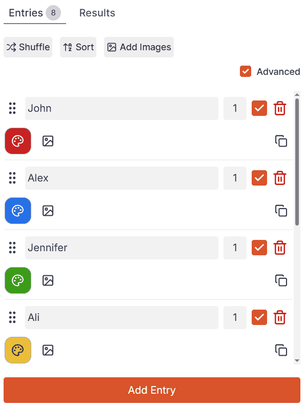 - Weight: By default, every entry has a weight of ‘1’. Increase weight to make a slice bigger and more likely to win.