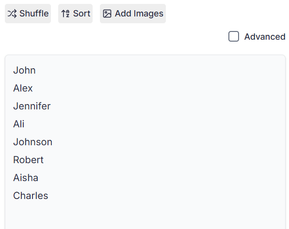 The basic text box lets you type or paste items, one per line. Each line becomes a separate slice on the wheel.